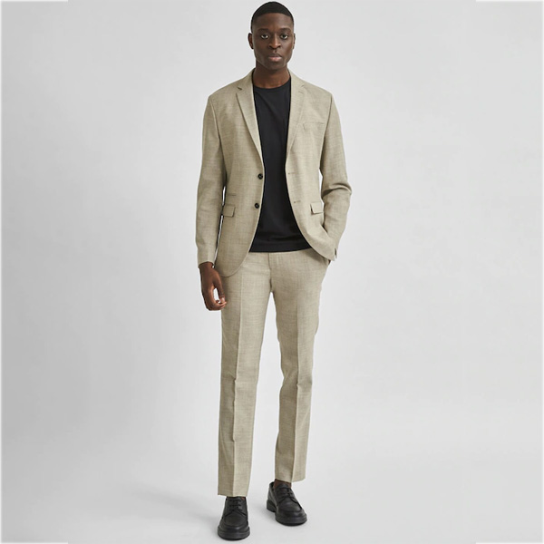 Men Beige Self-Design Single-Breasted Slim-Fit Formal Blazer